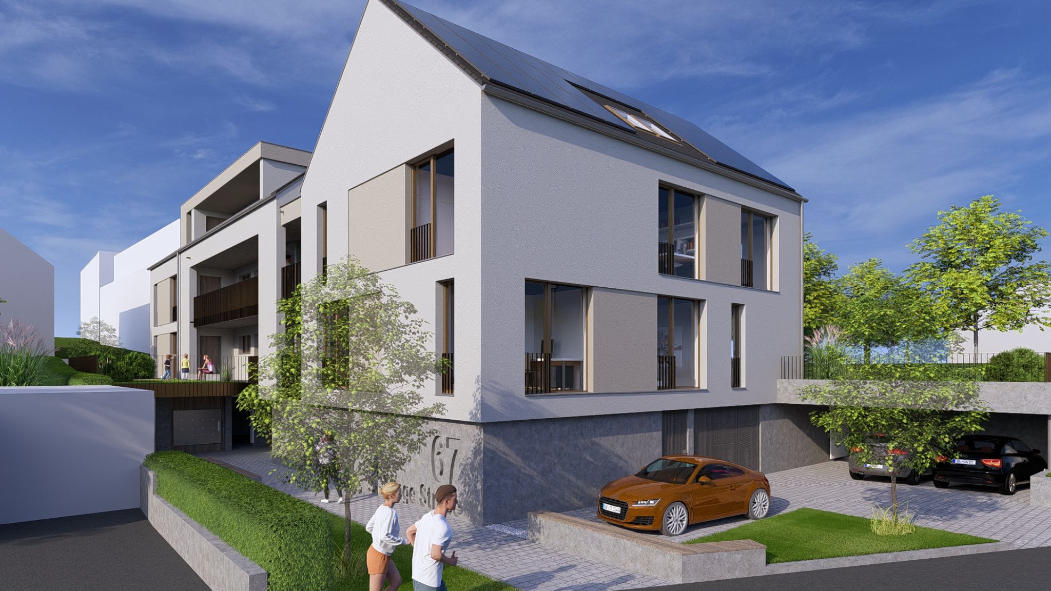 Auf dem 1.228 m² großen Eckgrundstück an der Lange Straße 67 entsteht ein architektonisch anspruchsvolles Wohngebäude mit zehn Eigentumswohnungen, zwölf Tiefgaragenstellplätzen und drei Außenstellplätzen. Die klare, zeitlose Architektur und die massive Bauweise schaffen ein hochwertiges Zuhause, das auf Dauer Bestand hat – und zugleich licht ist, freundlich und behaglich.